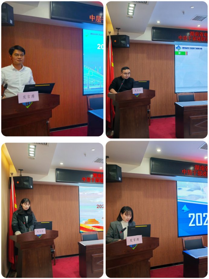全体中层干部依次上台,根据考核要求,结合自身和部门的工作实际,围绕德、能、勤、绩、廉,重点是政治素质和工作实绩展开述职。通过翔实的数据与实例,系统地对履行岗位职责情况进行年度汇报、问题剖析、经验总结,并提出应对方案和整改措施,明确了2024年的工作思路和努力方向。