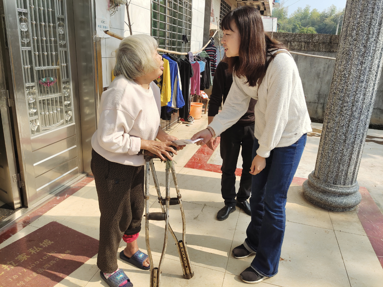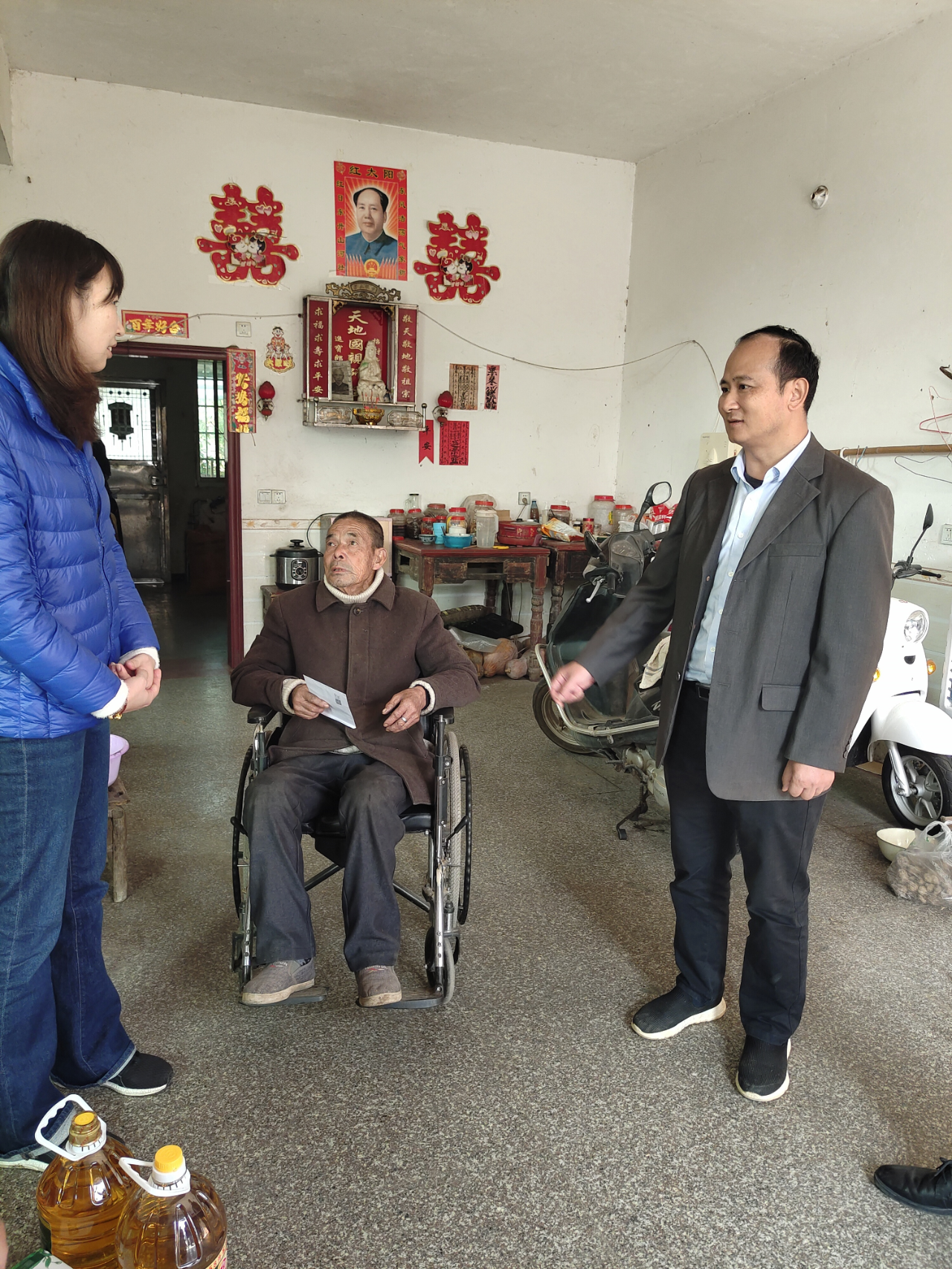 在村干部的带领下,党员代表们深入辖区内重点贫困户家中探望,送上慰问金及大米、油等慰问物资。大家与贫困户嘘寒问暖,了解他们身体状况、家庭情况和实际需求,并叮嘱他们好好保重身体,保持良好心态,生活中遇到困难及时反映。受到慰问的贫困户对我院给予的真情关怀表示了深深的感谢。