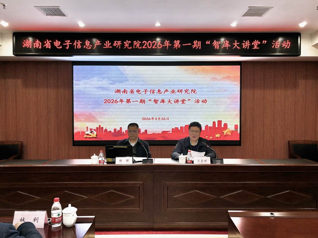 3月26日上午,省电子信息产业研究院举行2026年第一期“智库大讲堂”,省工业和信息化厅原党组成员、总经济师熊琛围绕“人工智能+”作专题辅导。院党委书记、院长肖晨晖主持讲座。