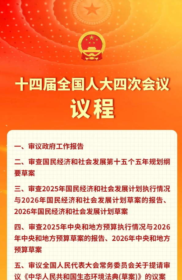 十四届全国人大四次会议议程定了
