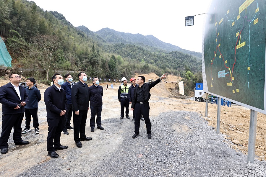 3月17日下午,毛伟明在宜章县莽山太空隧道项目建设现场调研。
