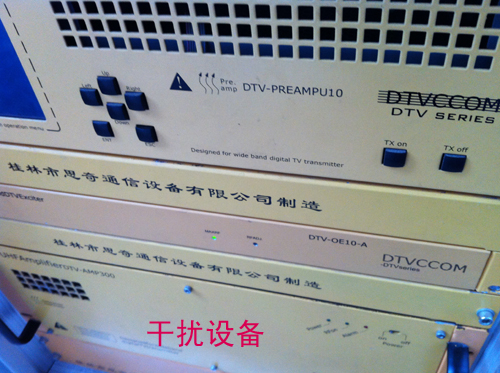 据了解,该设备为MMDS转U频段设备,由桂林市思奇通信设备有限公司制造,没有型号核准证,属于不合格产品。由于以前的设备功率过小,9月18日刚换上大功率的新设备。管理处责令市电视台进行整改。市电视台立即关掉了新设备,重新启用老设备,经电信部门反馈,基站干扰消除,通信恢复正常。