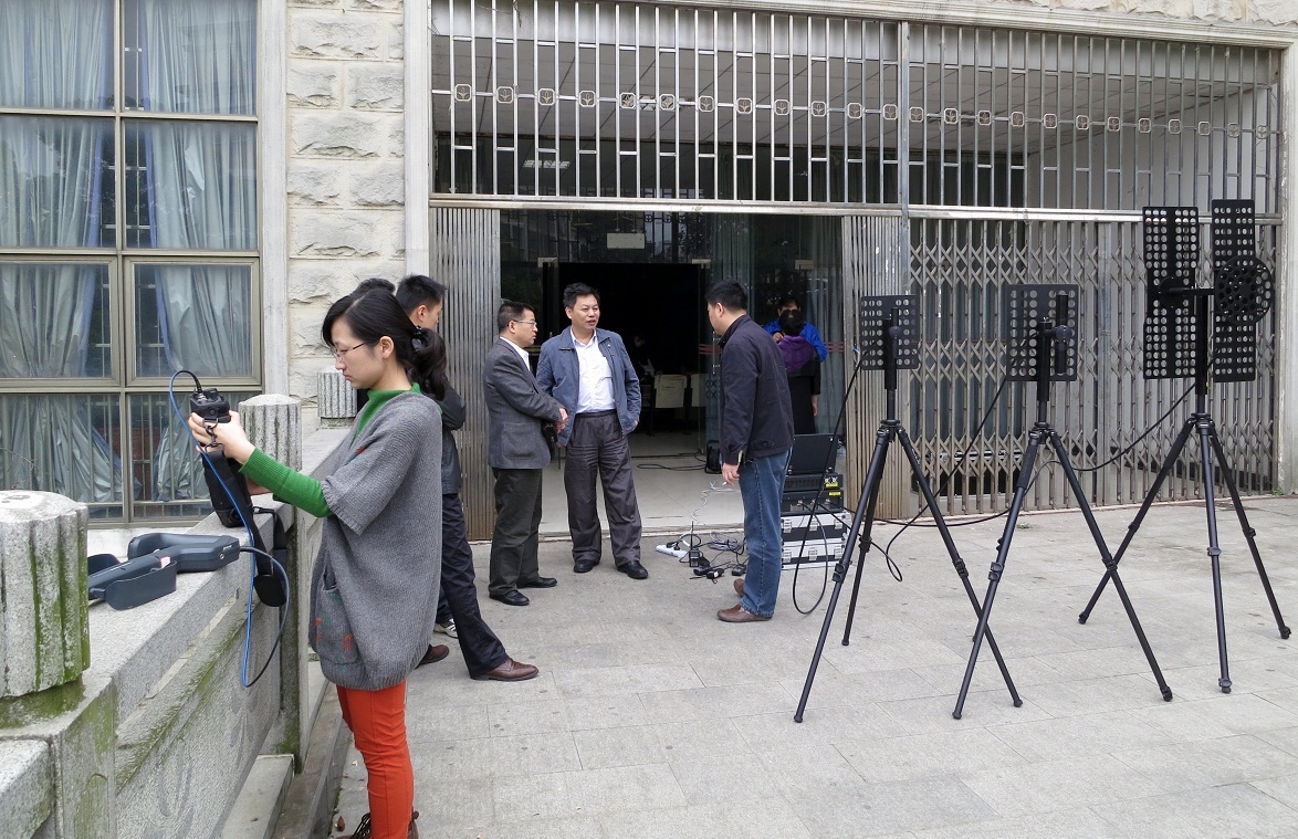 在中南林科大考点,巡考人员架设好设备后迅速对考场周边电磁环境进行监测