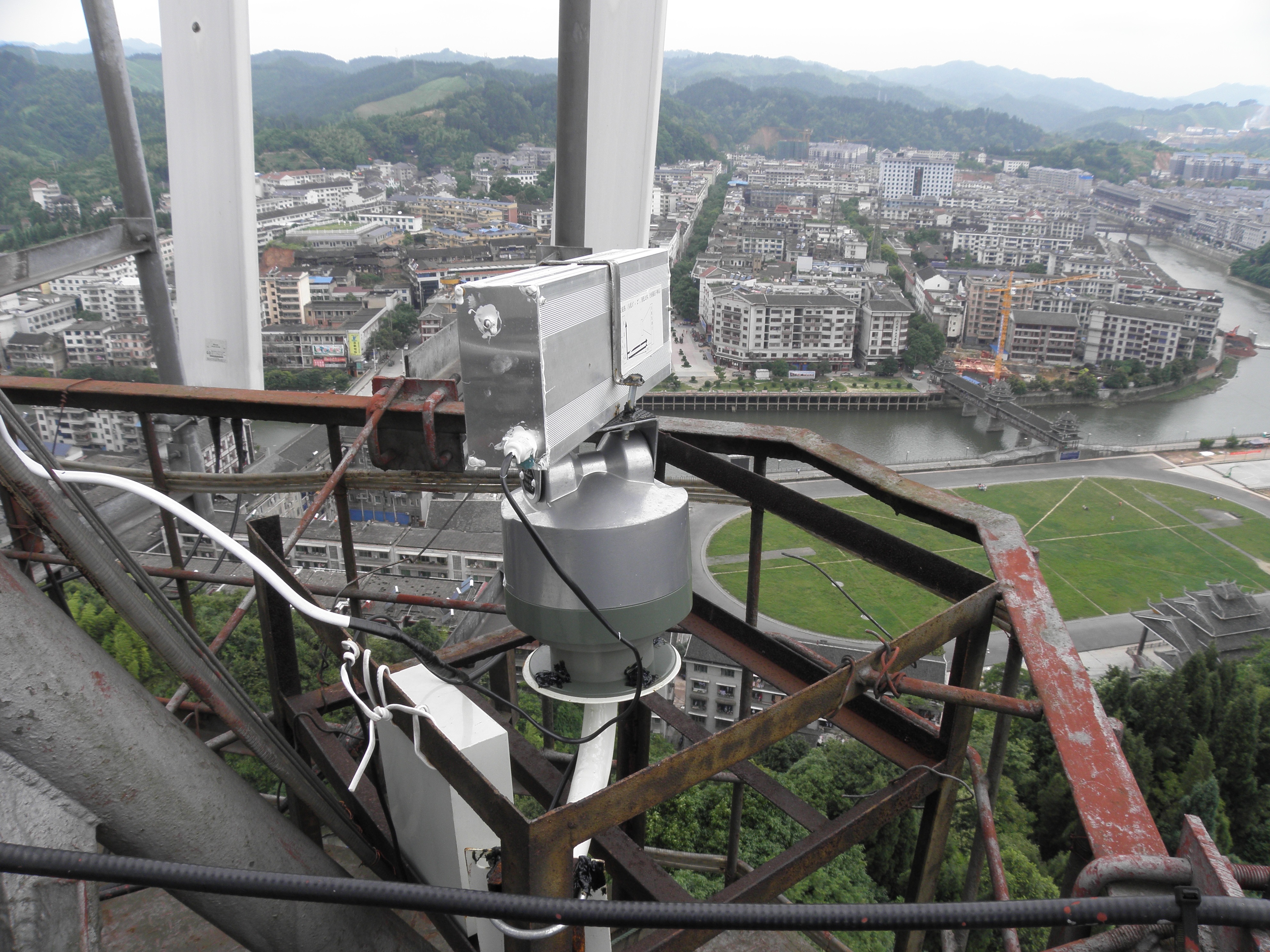 安装在电视发射台铁塔上的卫星电视无线电干扰器