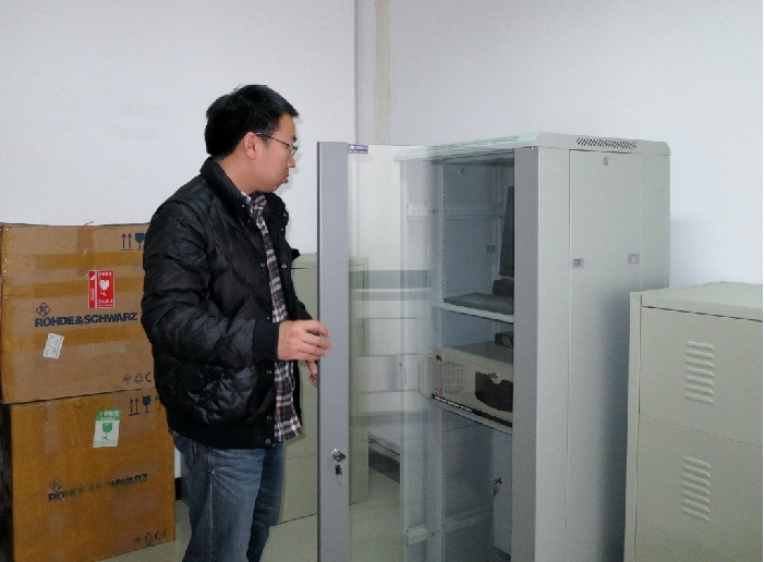 国庆节前,技术人员在信息大厦固定站机房对设备进行安全检查