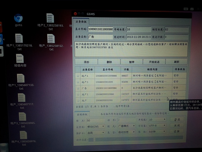 近期,市长热线及郴州市移动通信公司多次接到用户投诉,反映在健康路、中皇城等区域手机有时无法正常接打电话,并时常收到医药、地产、诈骗类短信。11月29日,移动公司工作人员在对这些区域进行测试时,发现基站信号异常,经过技术测定和分析,为通信“伪基站”所为,立即向郴州市无线电管理处投诉。得知情况后,郴州市管理处高度重视,立即调集执法人员及技术力量前往受干扰区域。根据市移动公司反映的情况,经侦测分析,将可疑发射设备锁定在国庆南路中皇城附近的某宾馆201房间。11月29日20点左右,在当地派出所民警的配合下,查获了正在群发短信息的通信“伪基站”一套。