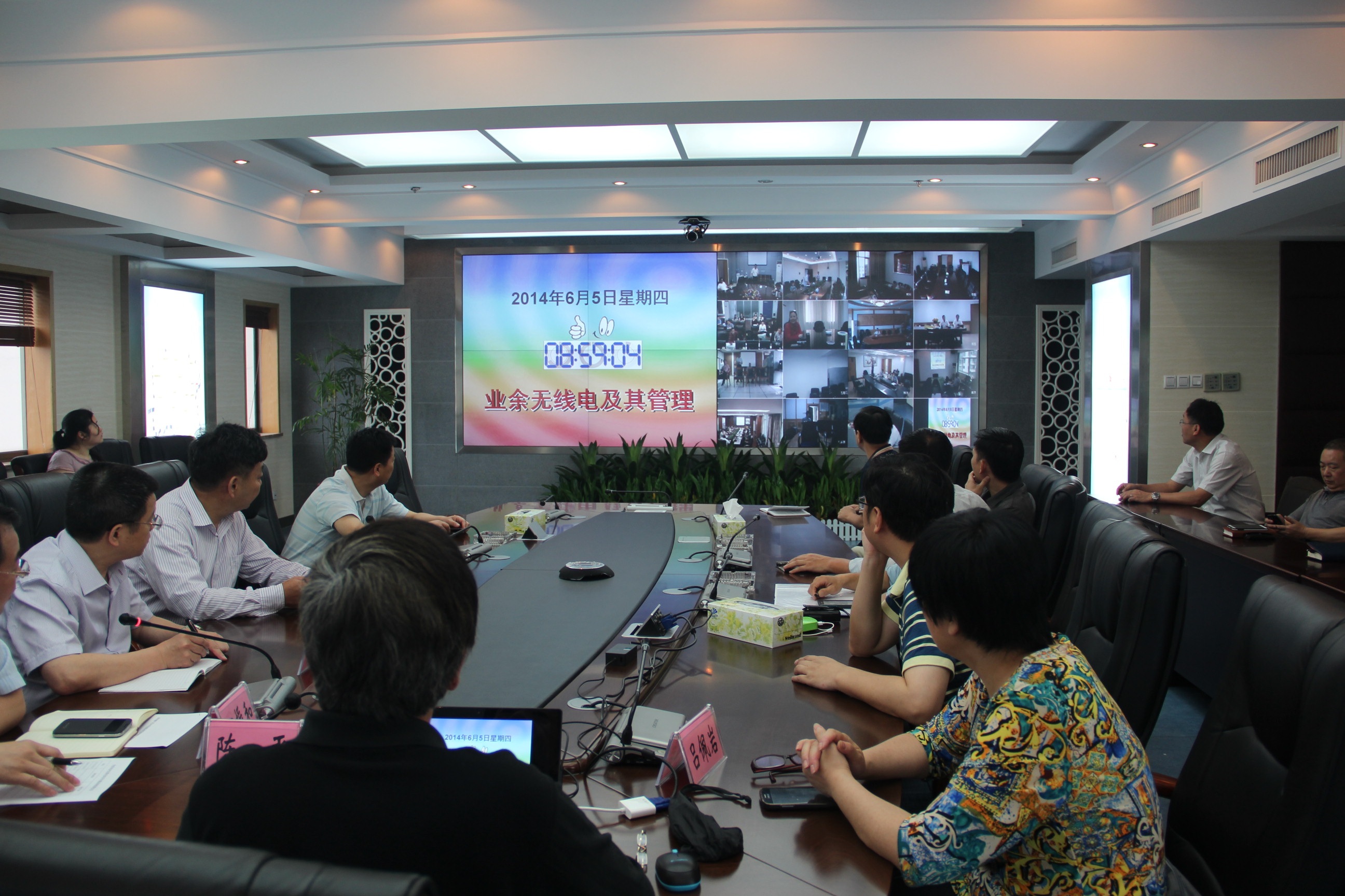 日上午,我省组织业余无线电管理知识视频讲座。图为省无线电网控中心主会场。