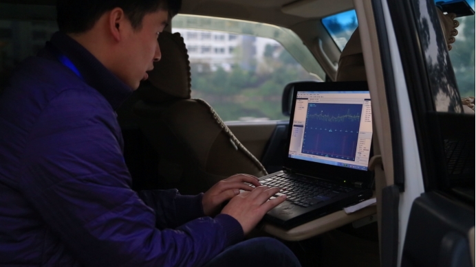 竞赛考核时,手持无线电监测设备的队员们,冒着秋风细雨,穿行在这一片茂密树林中。他们虽然年龄大小不一、来自不同市州,但严守比赛规则,精诚团结,分工协作,仔细搜寻隐藏在山地里丛林中的“伪基站”、“黑广播”等信号源。他们时而穿梭在盘根错节的丛林中,时而攀爬在陡峭崎岖的山坡上,每查找到一个信号源,来不及欢呼,汗流浃背、争分夺秒地向下一个目标进攻。每一轮任务结束后,平时身强力壮的队员们都累得瘫软在地上。近乎实战的演练,检验了演练成效。