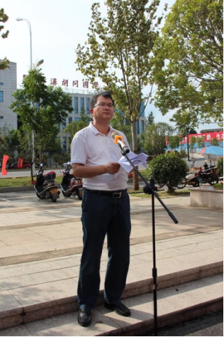 大队长周平在启动仪式上作动员讲话。摄影/杨玲