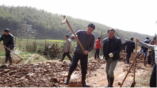 李逢各主任带领干部职工一道参加村里组织的修路劳动