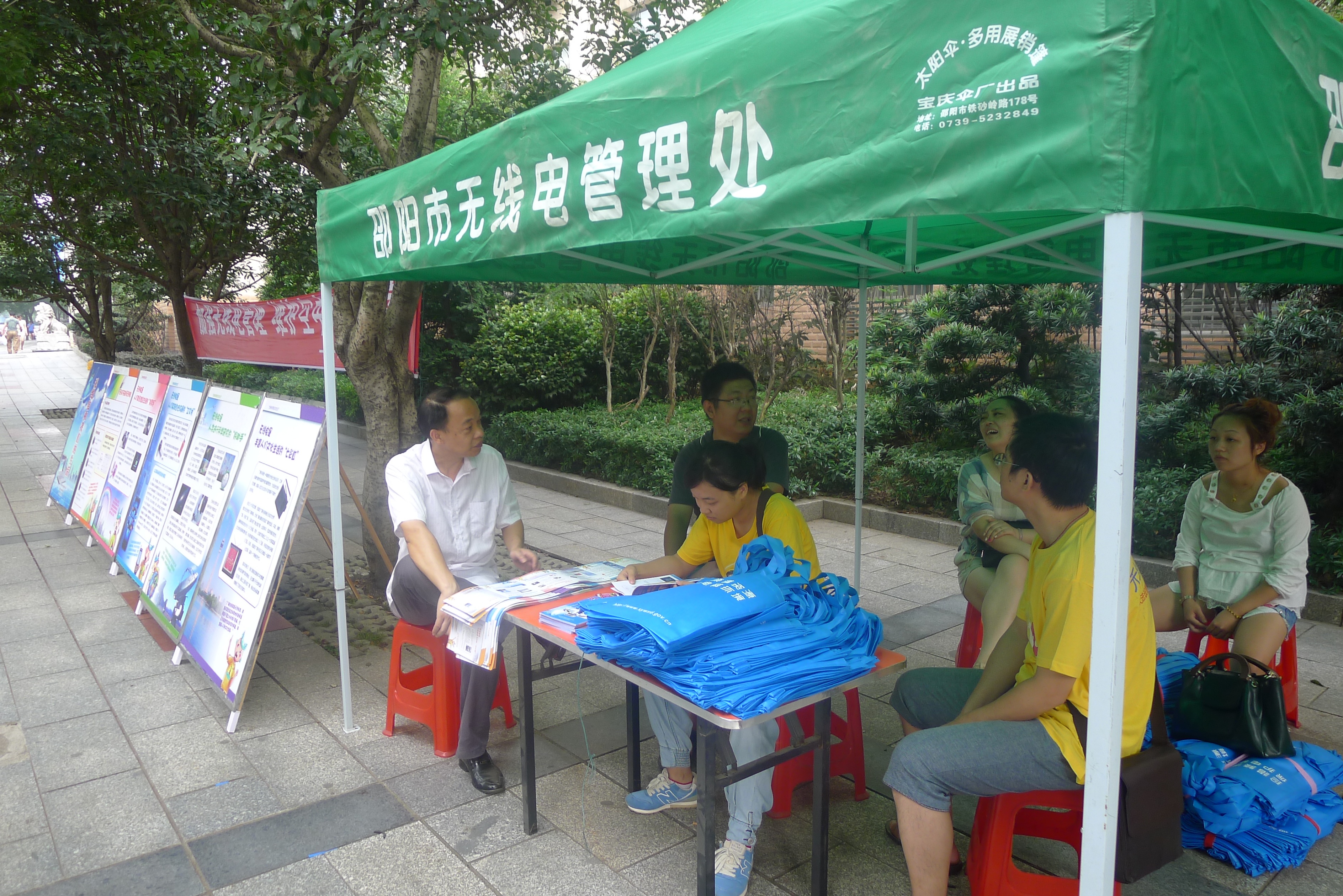9月11日上午,邵阳市无线电管理处全体人员走上街头,在市政府门口组织开展无线电宣传活动,庆祝《中华人民共和国无线电管理条例》颁布实施二十一周年。