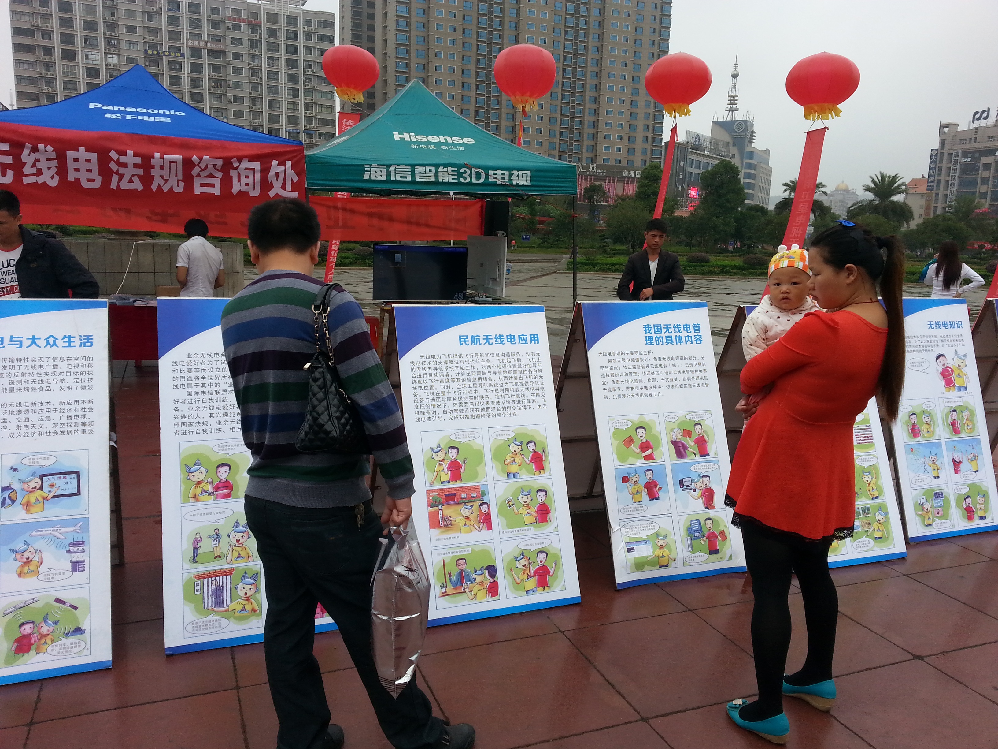 日现场采访宣传活动。三是在市县各公众移动通信公司主要营业厅进行展板、海报、电子字幕及宣传手册宣传。四是在市五岭广场开展科普知识宣传活动,联合市教育部门、文化广播部门、市业余无线电协会开展电台通联及无线电台设备展示活动,开展无线电法律法规及科普知识现场咨询答疑活动。五是联合桂阳县经信局、市业余无线电协会开展“珍惜频谱资源、保护电磁环境、无线科普下乡”主题宣传活动。在桂阳开展无线电应急通信演示、电台通联活动,向老百姓发放宣传手册、“电波卫士”光盘,粘贴宣传海报、开展无线电法律法规及科普知识现场咨询答疑活动。六是开展车队广播流动宣传活动,在市辖区主要街道、小区,桂阳、嘉禾主要城区、物业小区开展广播流动宣传活动。