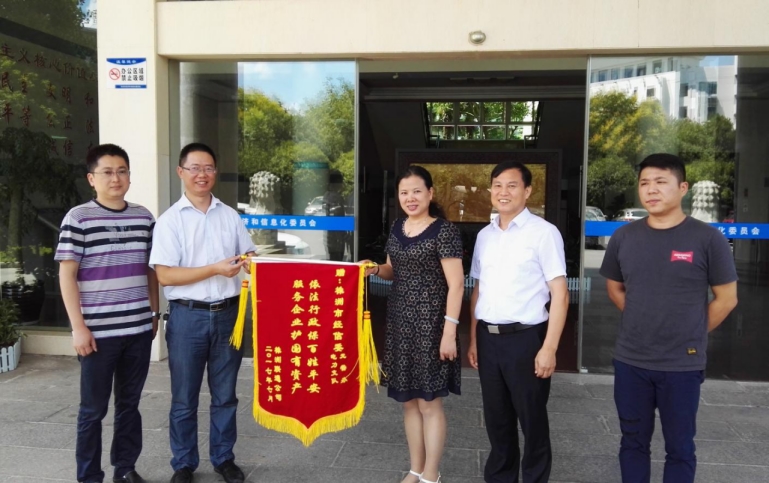 8月29日,株洲联通副总丁光兴代表株洲联通给株洲市经信委送来锦旗一面,印有:“依法行政保百姓平安,服务企业护国有资产”,感谢株洲市经信委无线电管理部门和电力执法支队对企业的帮助。