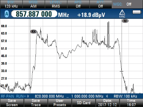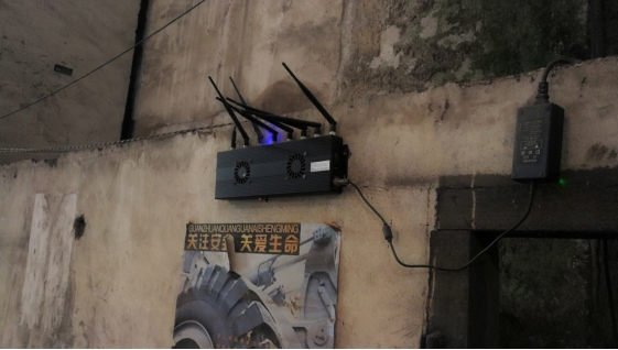 12月12日下午,无线电管理工作人员通过市国资委联系到国资公司副总经理廖坤山。他当即表态,要积极配合解决干扰问题。随后在公司的相关人员多方联系和协调下,无线电管理执法人员得以进入水泥厂机修车间,并顺利的找到了位于墙壁上的3台带多天线的发射设备,通过开关机测试,确认正在工作的两台发射设备——GPS汽车定位干扰器,就是这次移动通信干扰事件的“罪魁祸首”。