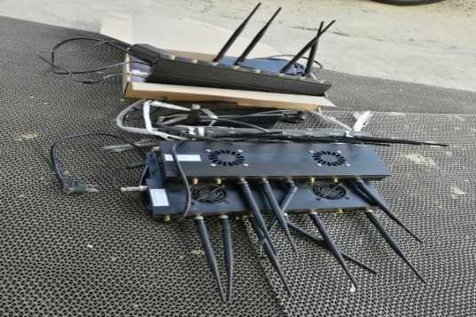 非法设备、使用的4台手机信号屏蔽器。摄影/彭世中