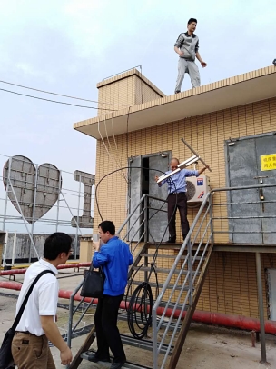 无管处通过监测监听发现,在100.9MHz有一非法广播信号,播出内容露骨淫秽。在使用固定监测站交叉定位后,干扰排查小组立即出动,不断逼近干扰源,当排查小组行驶至邵阳友阿广场大楼附近时,电平值达到最大值,方向指向友阿广场。27日下午3:45,排查小组在友阿广场30楼电梯机房楼顶发现 “黑广播”设备,通过开关机试验确认其发射频率为100.9MHz,功率1000W。执法人员在现场取证完后,依法对“黑广播”进行拆除,目前该案件已移交稽查局作进一步调查处理。邵阳交通频道对执法过程进行了跟踪报道。