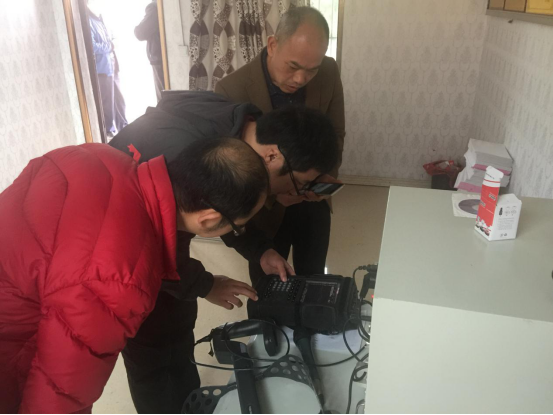 排查小组在邵东马路村现场测试。摄影/金军华