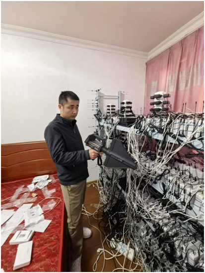 近日,湘潭市无线电管理处联合公安部门、移动通信运营商开展专项行动,成功查处1起GoIP设备干扰移动通信基站案件,累计排查非法设备窝点2处,查获GoIP设备16套、手机卡接入设备400余套及未使用的手机卡若干,抓获涉案嫌疑人2名。