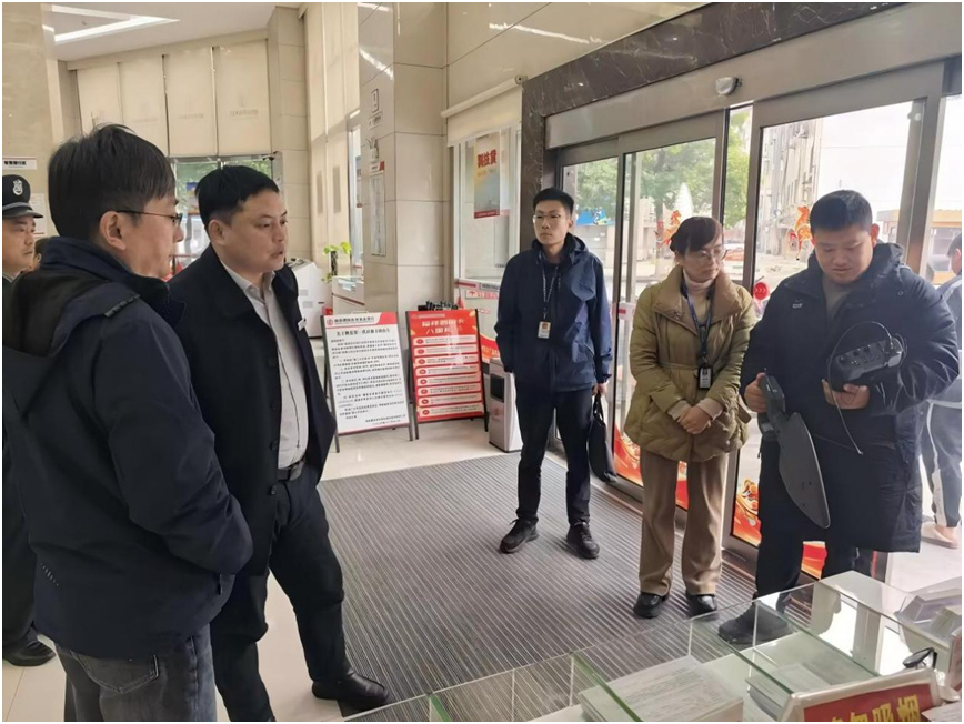 工作人员在某银行排查干扰
