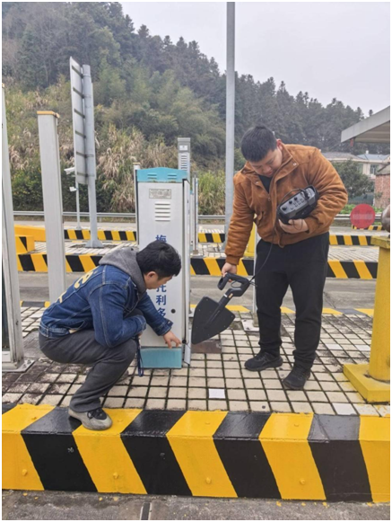 工作人员在炎陵西收费站排查干扰