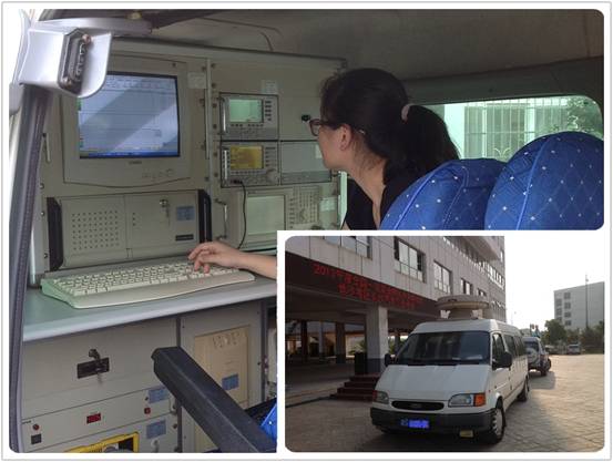 9月14日,巡考人员在巡考现场利用移动监测车对作弊信号进行测向定位
