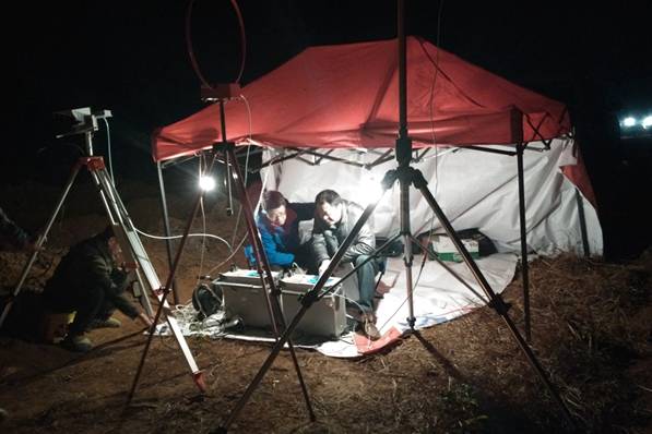 夜晚的山顶北风呼啸,测试人员仍在坚持测试