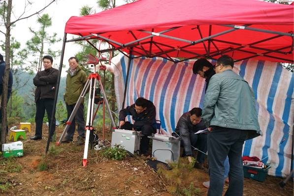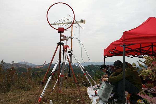 测试人员在马塘选址山顶开展测试