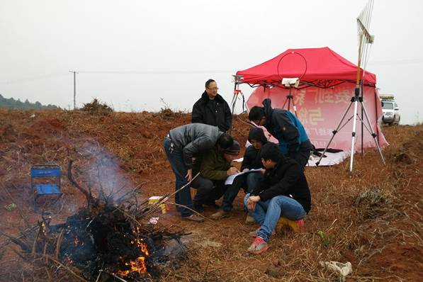 测试组在蔡市选址进行测试,当地村民点起柴火为测试人员抵御严寒