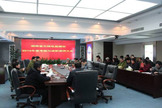 1月28日,省站在信息大厦30楼召开2014年度考核和述职测评大会。会议由湖南省无委办副主任、省监测站站长田振和主持,全站、中心全体干部职工参加了会议。