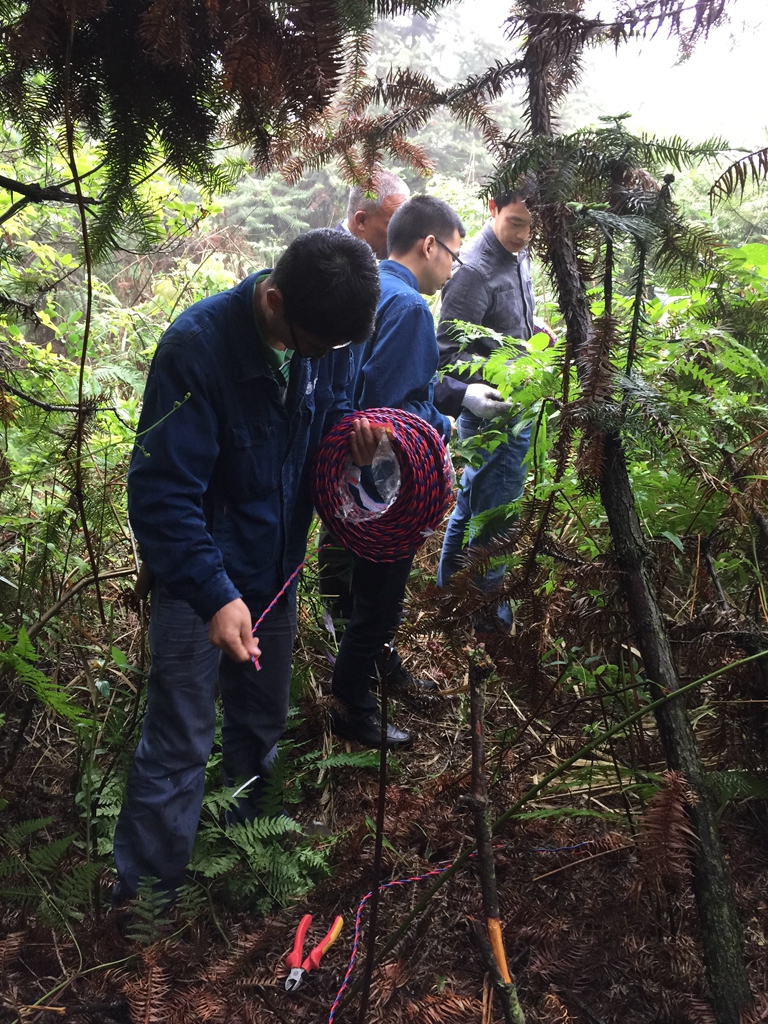 5月21日,虽然城里已进入高温天气,但在海拔1500多米高的山岭上,清晨寒风逼人,温度只有10来度,测试组人员的衣服单薄,冷的有点发抖。由于原始山林道路不通,运载设备车辆只能停在山脚,重达100多公斤的仪器设备需要通过人工背负上山。从停车点到测试地点,连一条人行小道都没有,经过来回两个小时在杂草荆棘中穿行,测试人员齐心协力、分工协作,将设备扛上山顶,同时,与电力部门人员一起铺放400多米电缆线,拉通了山顶测试点临时供电线路。通过多个时段的测试,顺利采集了拟建天气雷达站址电磁环境数据。省监测站将及时出具电磁环境测试报告,为电力部门拟建台站频率指配提供技术依据。