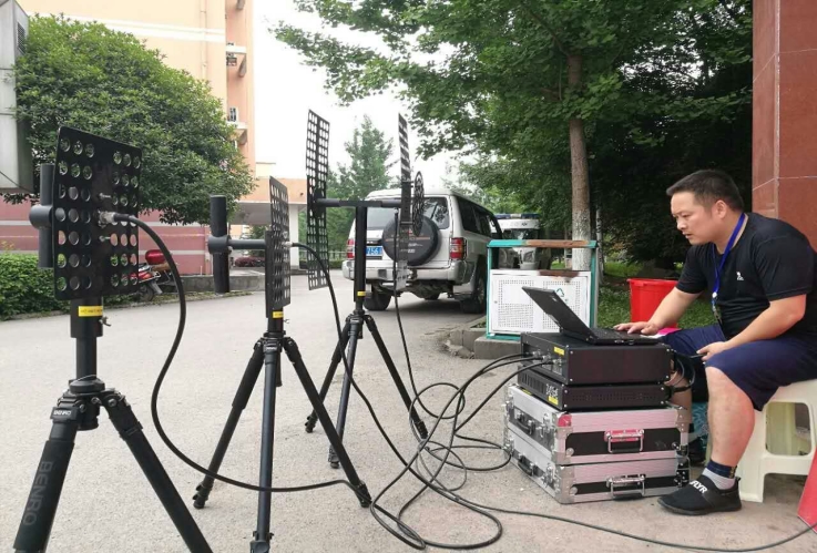 图为工作人员正在调试无线电压制设备