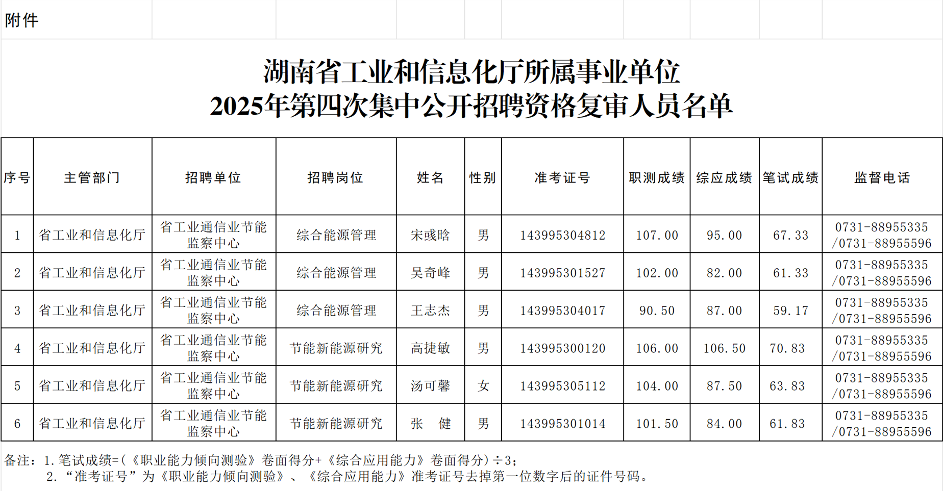 附件:湖南省工业和信息化厅所属事业单位2025年第四次集中公开招聘资格复审人员名单