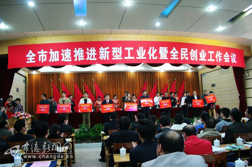 3月18日,全市加速推进新型工业化暨全民创业工作会议在芷园会堂召开。市委书记卿渐伟要求,全市经济发展要紧扣科学发展为主题,转变发展方式主线,以转型创新发展为核心,进一步突出重点,鼓劲加压,推动全市新型工业化迈上新台阶。