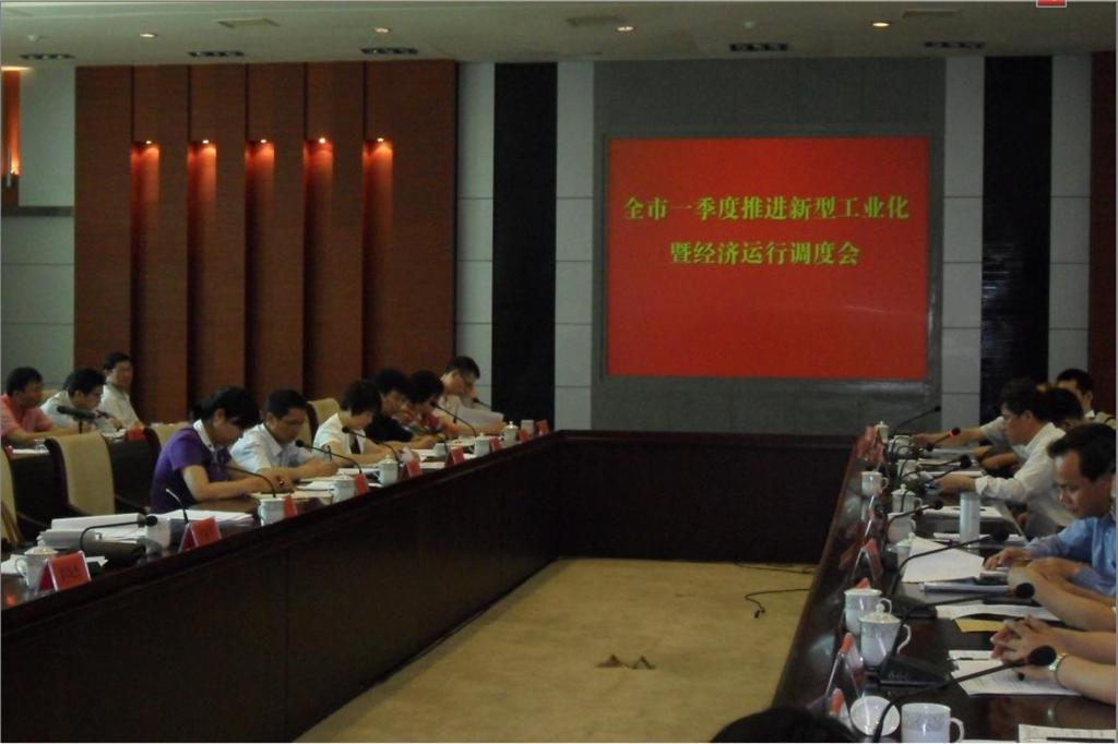 会上,湘钢、湘电、江麓等18个重点企业,各县(市)区经信(科)局和重点园区产业发展局通报了一季度经济运行情况,存在的困难和问题,并提出了下一步工作措施。市经信委有关科室负责人通报了今年1-3月份全市推进新型工业化和经济运行情况,安排部署了下一阶段的工作任务;市统计局有关负责人就做好全年新型工业化统计和考核工作提出了要求。会议还对2010年工业经济运行目标管理获奖单位和加速推进新型工业化调度工作先进个人进行了通报表彰。最后,省经信委经济运行调节处调研员张辉简要介绍了全省工业经济运行形势,充分肯定了湘潭推进新型工业化工作,并对今年后阶段湘潭的新型工业化和经济运行工作提出了殷切希望。