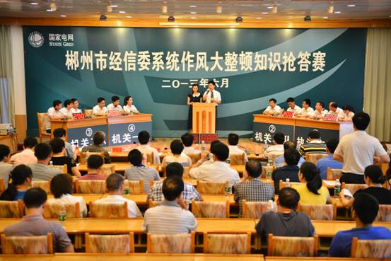 6月21日上午由郴州市经信委主办的一场别开生面的作风大整顿知识抢答赛隆重举行。决赛现场,来自市经信委机关的三支队伍和市能源监察和电力行政执法支队的参赛队经过紧张而激烈的角逐,最终,在初赛时险胜入围的市经信委机关二队凭借优异表现一举夺魁,实现了决赛场上的逆转。市经信委机关三队荣获二等奖,市电力执法支队和市经信委机关一队荣获三等奖。