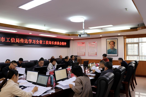 会上,市工信局党组成员、副局长蒋诚传达了省工信厅党组书记、厅长毛腾飞在全省工信局长座谈会的讲话和指示精神,与会干部认真开展了学习与讨论。