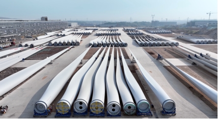图为韶山三一重能叶片工厂产品库