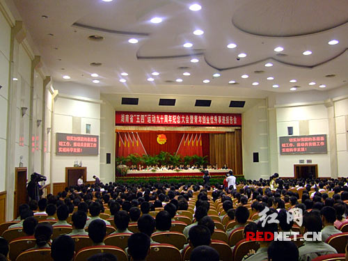 (湖南省五四运动九十周年纪念大会暨青年创业优秀事迹报告会在湖南省委礼堂隆重召开。)