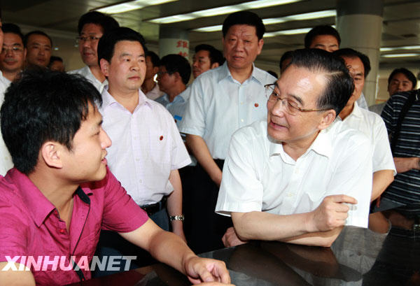 这是6月12日,温家宝在湖南省株洲市人力资源市场进行调研。6月12日至14日,中共中央政治局常委、国务院总理温家宝在湖南考察。新华社记者鞠鹏摄