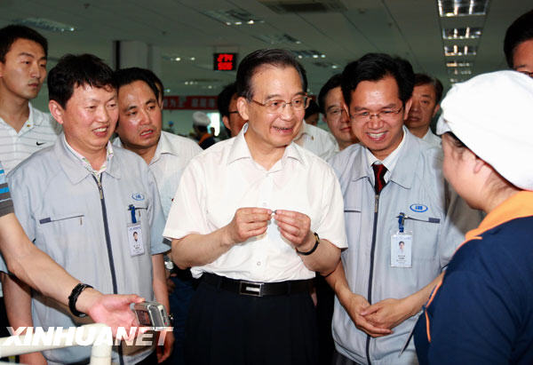 温家宝非常关心企业生产经营情况。在湖南考察的两天多时间里,他先后到重型机械、风电设备、电子信息、汽车、轻纺等行业的10家企业,每到一家企业,都和职工亲切交谈,详细了解企业生产经营情况。得知这些企业面对危机迎难而上,取得较好的经营业绩,温家宝十分高兴。他反复强调,应对国际金融危机,归根结底要靠科技,靠人才,靠发明创造,靠专利产品。只要能够做到这四点,我们就有取之不尽、用之不竭的动力,就能战胜困难,路子会越走越宽。