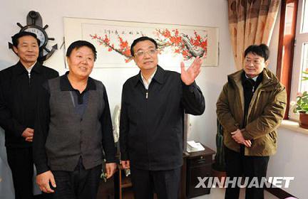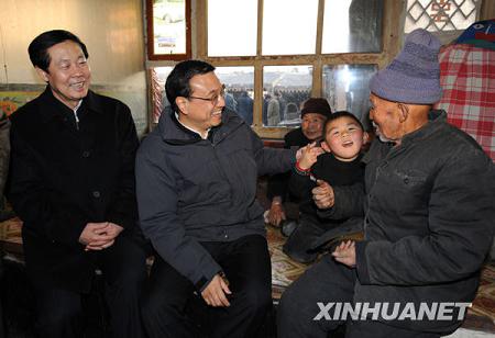 12月27日至28日,中共中央政治局常委、国务院副总理李克强在山西大同考察。这是12月27日,李克强在大同县倍加灶镇营坊沟村看望蒋茂云一家。新华社记者 黄敬文摄