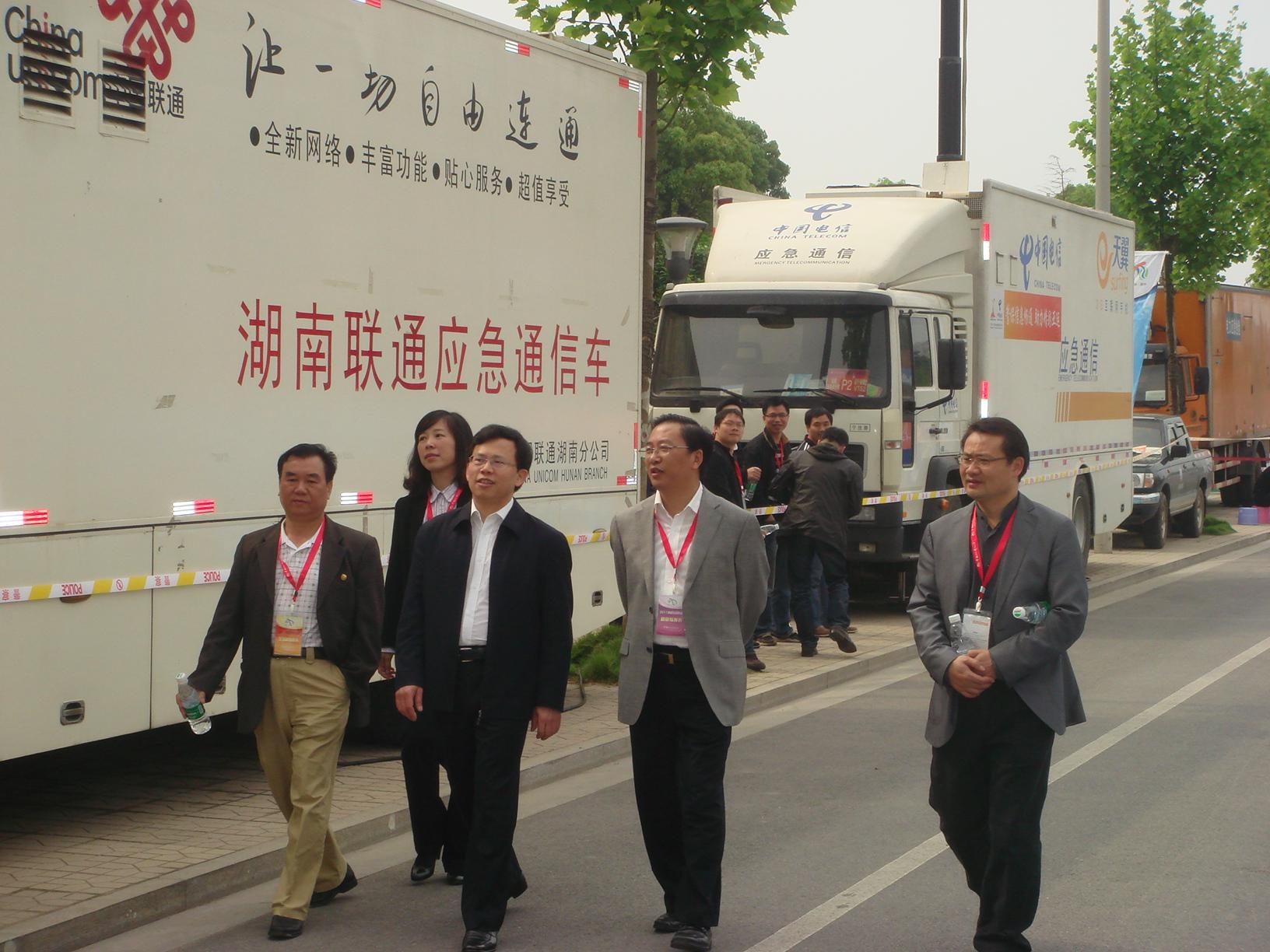 长沙市政府陈献春副市长(中)在管理处潘建军主任(左一)陪同下视察通信保障工作