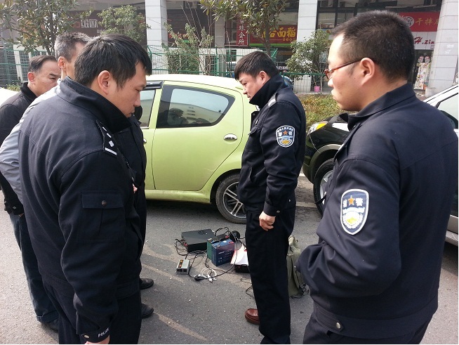 中南林业科技大学的巡考同样险象环生。上午 10点 30左右,该考点的巡考人员监测到疑似作弊数传信号,随即利用便携式设备追踪到学校的家属院内,发现了一可疑人员在一辆比亚迪轿车中作弊,巡考人员正要上前检查,作弊分子发觉立即启动汽车,肆意冲撞,突破了巡考人员和小区保安的阻挡,逃离现场。到 11点左右,该作弊车辆再次出现,巡考人员驾驶两台监测车,在西便门附近前后包围住该车,该作弊分子再次企图逃跑,但已无路可逃。巡考人员迅速通知考务、公安等有关部门,成功将 2名作弊分子抓获,并从车上收缴到作弊用无线电数传设备两套。