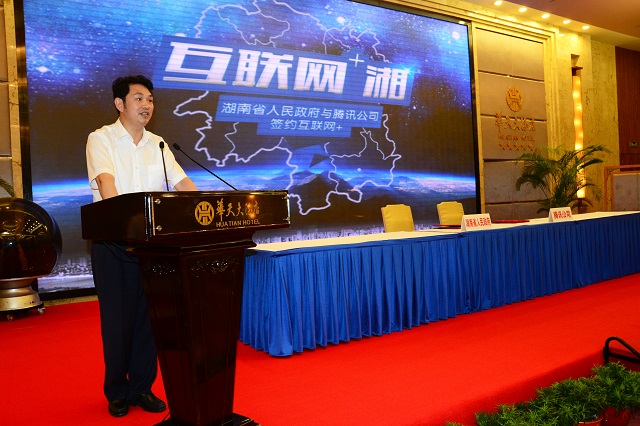 会见结束后,举行了湖南省人民政府与腾讯公司战略合作框架协议签约仪式。省委副书记、省长杜家毫,腾讯公司董事会主席兼首席执行官马化腾分别代表双方签署协议,就“互联网 +”达成战略合作。根据协议,双方将充分整合各自的优势资源,以实施“互联网 +”行动计划为结合点,以促进湖南经济转型升级和社会事业发展为目标,开展全方位、深层次的战略合作,共同推进互联网与湖南经济社会各领域融合发展。这意味着,“互联网 +”将在三湘大地落地生根。