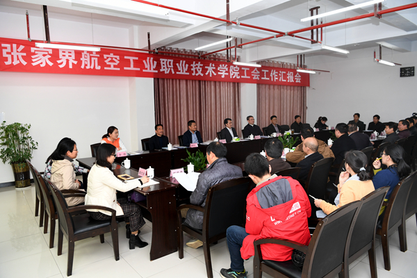 汇报会上,姜玉平代表学院做了专题汇报。学院自创建以来,依托航空工业办学,突出国防军工特色,服务地方经济建设,为航空工业和张家界经济社会发展做出了重要贡献。近年来,更是步入了发展的快车道,一举实现整体搬迁并全面建成湖南省示范性高职院校。同时,学院高度重视工会工作,紧密围绕学院的中心任务,充分运用工会“维护、建设、参与、教育”四项基本职能,在维护教职工合法权益和学院整体利益、促进学院民主管理、加强教职工队伍建设、推进教职工之家建设方面做了大量工作,获得了全省“模范职工之家”的称号。2017年,学院工会将在上级部门和院党委、行政领导下,团结带领全体教职工以优异的成绩迎接党的十九大胜利召开。