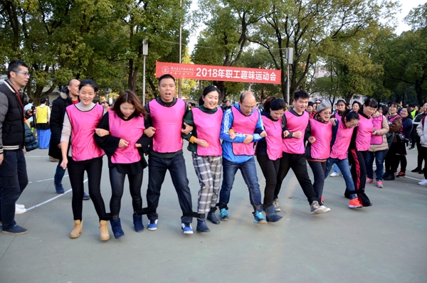 12月17日下午3点半,湖南省工业技师学院举行2018年教职工趣味运动会,全校近200名教职员工分别参加了集体跳绳、十人九足、心灵手巧、带球赛跑、 袋鼠跳、同舟共济共六个项目的比赛。