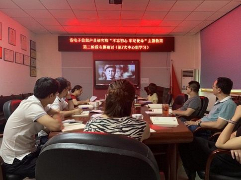 省电子信息产业研究院党委理论学习中心组集中观看纪录片《张富清:初心永恒》,专题学习张富清老英雄事迹。张富清同志的先进事迹让在场的党员干部深受振奋和鼓舞,纷纷表示将以张富清为榜样向英模学习,对照检查找差距,争当先进。