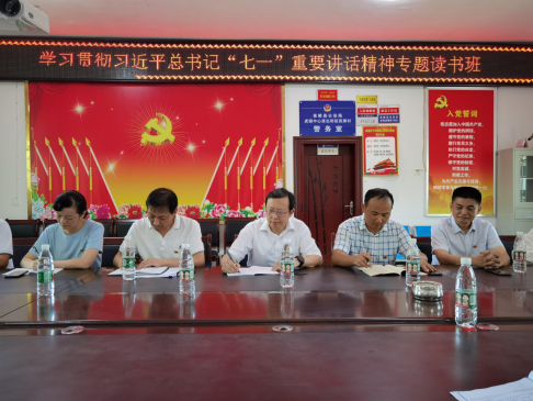 最后,在村部开展了“学习贯彻习近平总书记‘七一’重要讲话精神”专题读书班学习研讨活动。活动由王惠连主持,组织全体党员干部集中学习了《习近平主持十九届中共中央政治局第三十一次集体学习并发表重要讲话》、《省级领导干部学习贯彻习近平总书记“七一”重要讲话精神研讨交流会召开》、《毛伟明主持召开省政府常务会议 学习贯彻习近平总书记“七一”重要讲话精神》等重要内容,易兵等3名党员进行交流发言,其他在场同志也纷纷踊跃分享个人心得体会。研讨结束后,熊顺良总结强调,此次主题党日活动是一次“学史力行”生动的实践活动,我们要结合工作,进一步贯彻落实习近平总书记“七一”重要讲话精神,从中汲取奋进力量,坚决听从党中央号令,把思想和行动统一到习近平总书记重要讲话精神上来,树立志气、底气、骨气,立足岗位职责,在工作中践行初心,在履职中贡献力量。