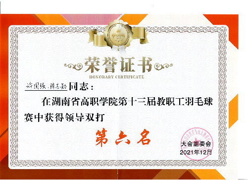 在羽毛球赛的角逐中,该学院党委书记许国强、原副院长陈志勋夺得领导组双打第六名的好成绩。乒乓球赛中,该学院纪委书记陈益林取得了领导组单打第五名的好成绩。张军、张晓山分别获得了男子单打第五名和第六名。张跃宁和崔吉雷、邓玉洁和刘燕玲两组分别获得男女子双打第八名。