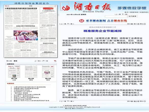 先进适用节能技术推广点多面广。发布《关于在省内征集节能“新技术、新装备和新产品”的通知》,遴选出40个项目,并结合节能监察等多种渠道进行推广;成功运用“2021湖南国际绿色发展博览会”支持单位便利条件,积极组织参展企业加强技术交流,推广节能“三新”技术,来参展的全省8个工业园区和67家企业反响良好。